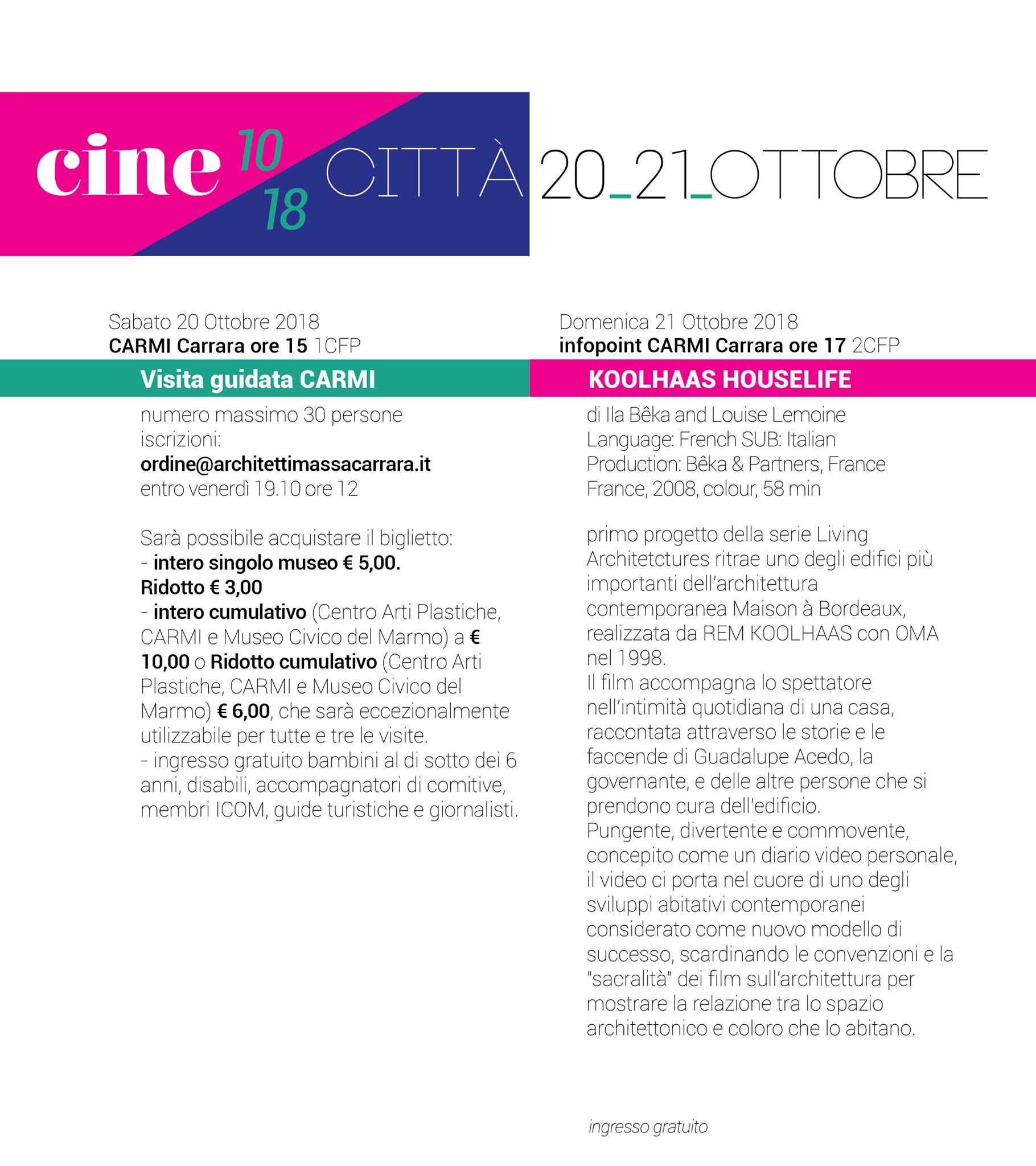 Si ricordano gli appuntamenti di Cine/Città 2018 per